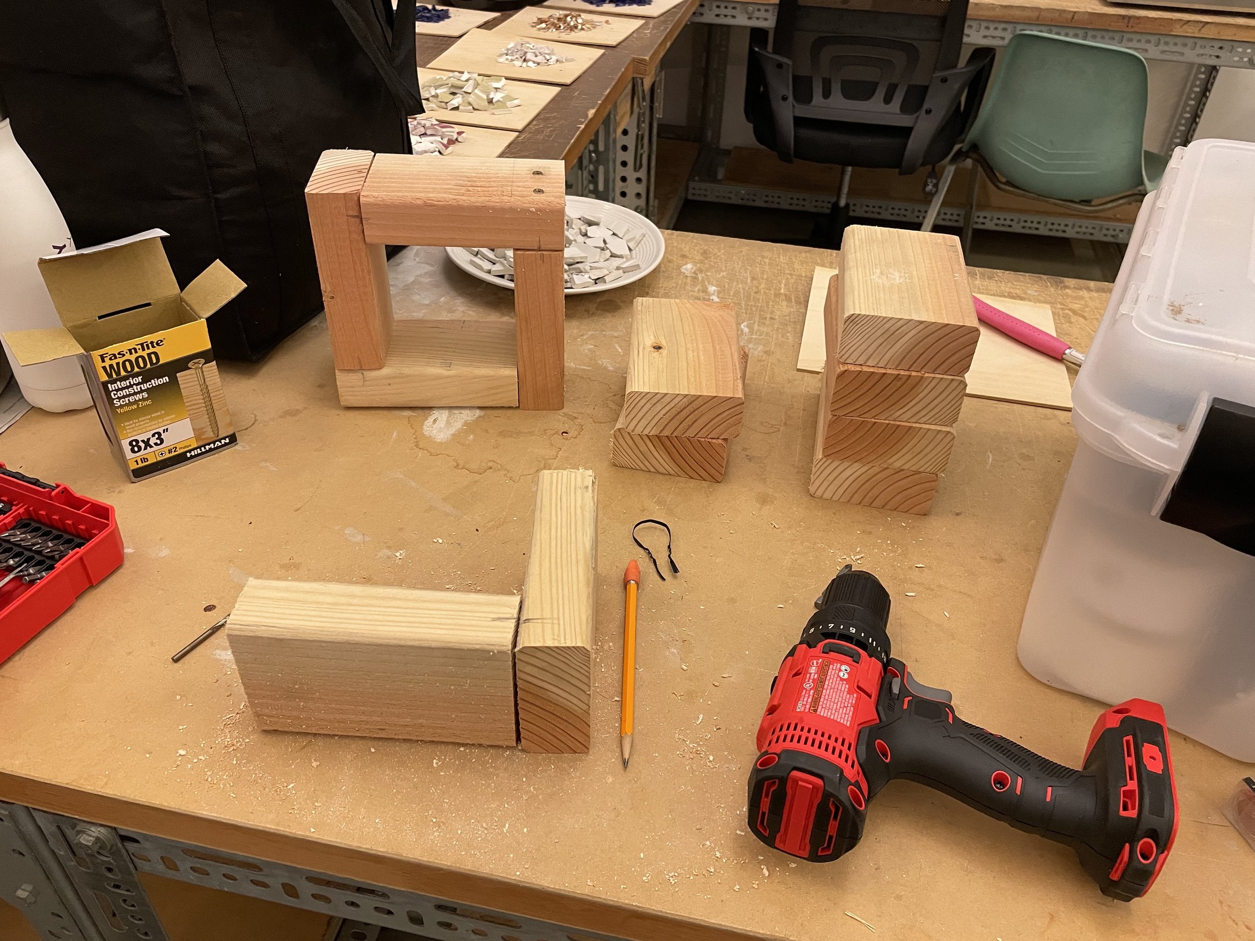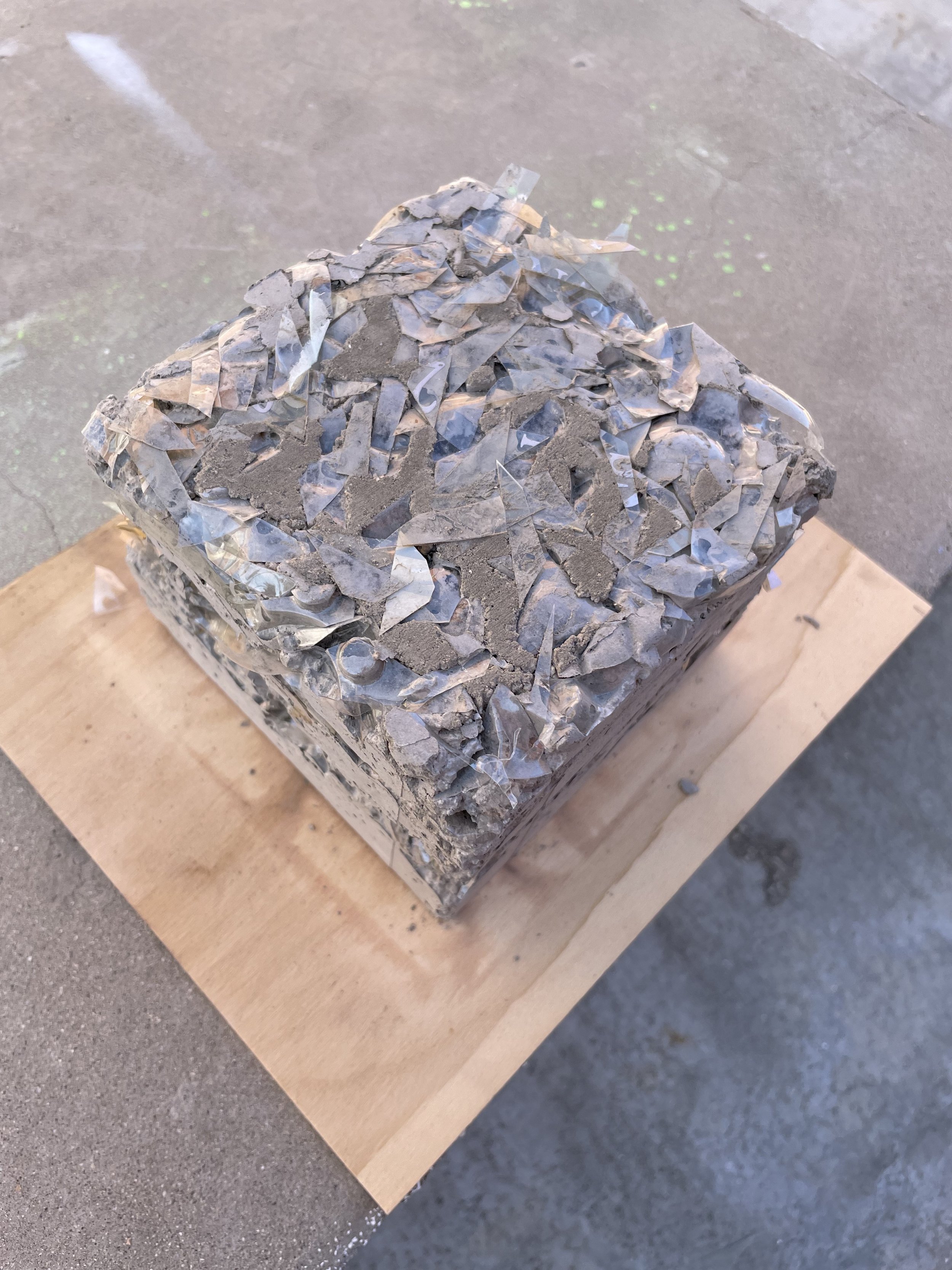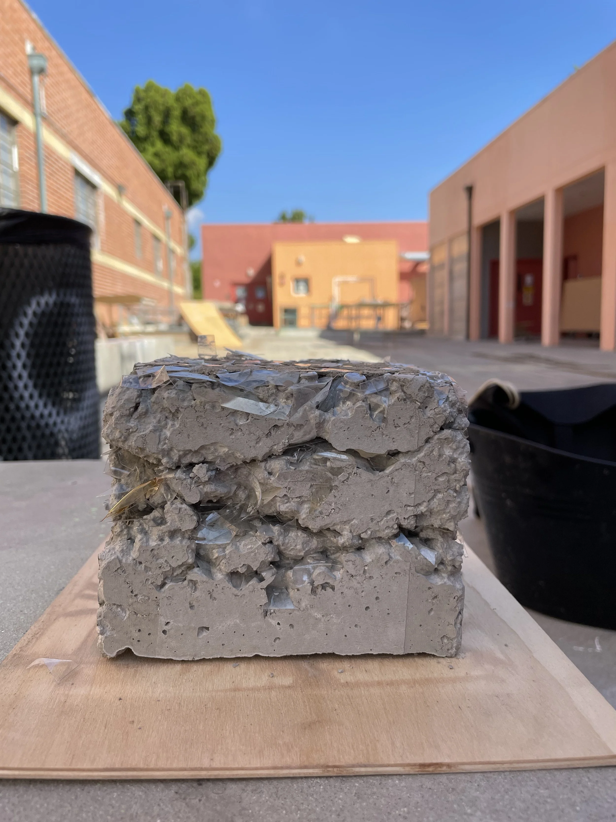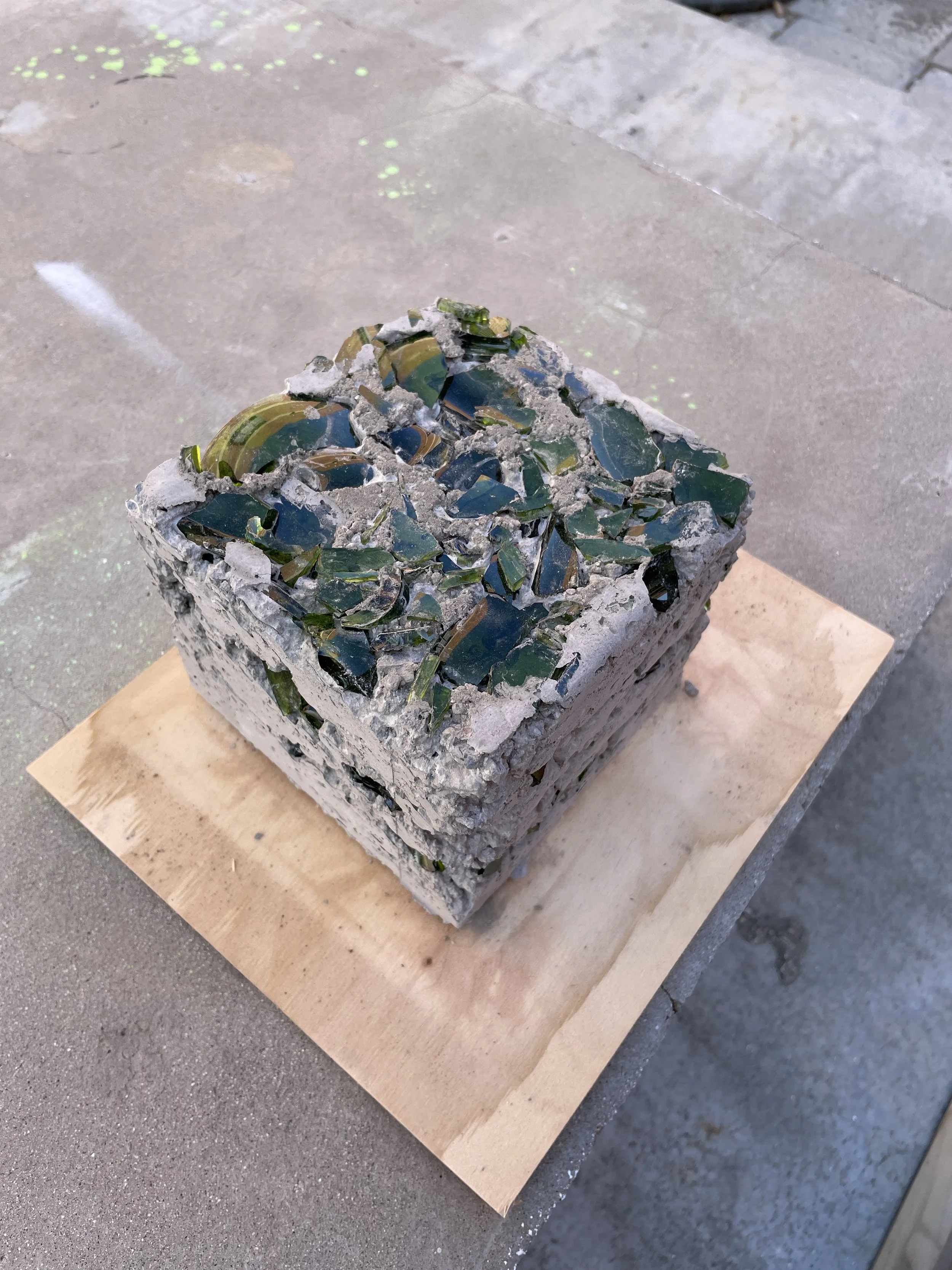 Sea Glass was created for an alternative to the original concrete mixture to create a more environmentally sustainable alternative. When looking into the idea of Terrazzo, the idea of using more aggregate, therefore less cement within the ratio, allows for the mixture to be more environmentally sustainable. Within the course, we explored various aggregate mixtures and then choice the one we thought worked best to create several textile blocks to create a textile block wall to showcase our environmentally sustainable alternative to the original Frank Lloyd Wright concrete textile block.