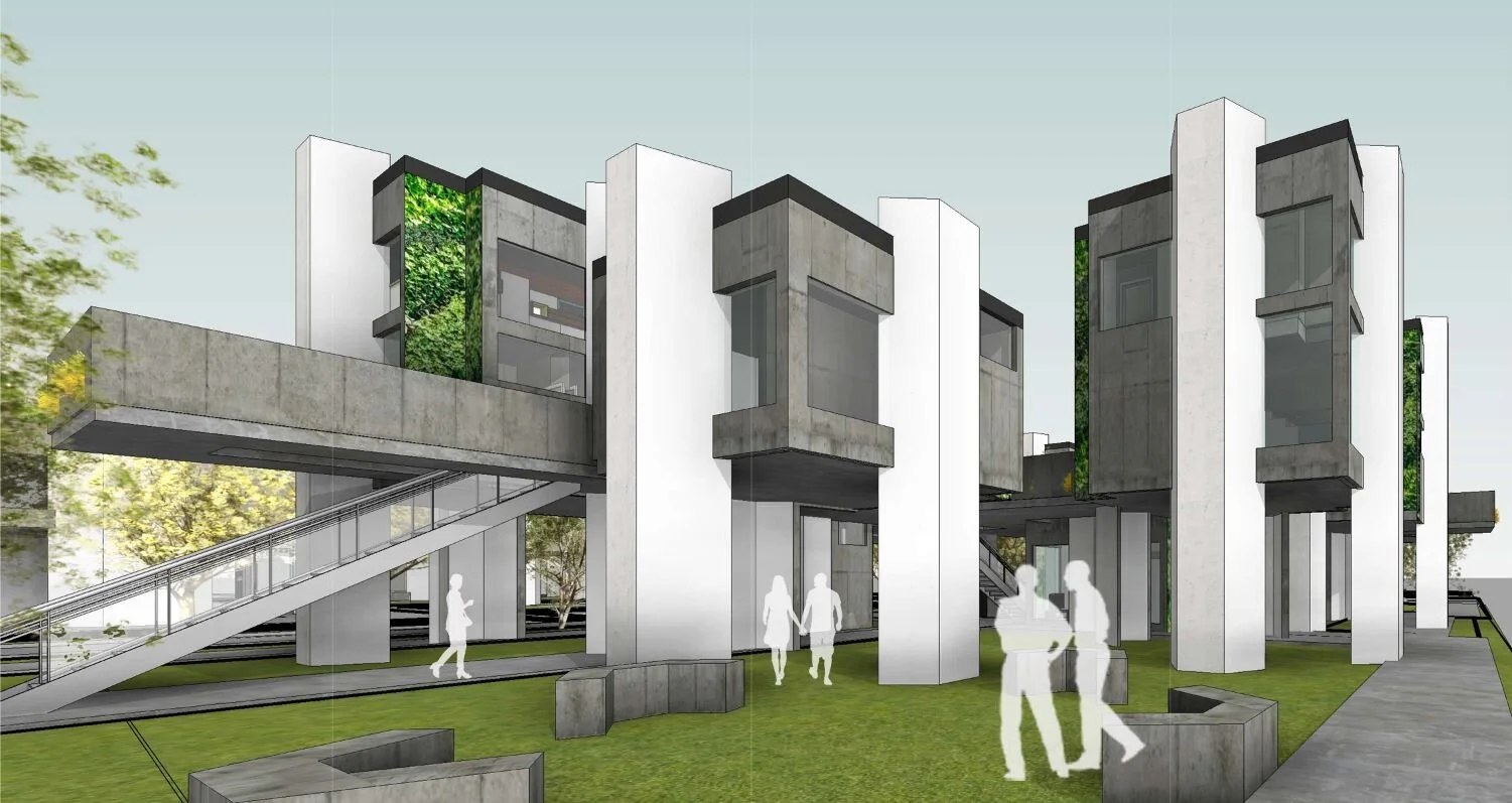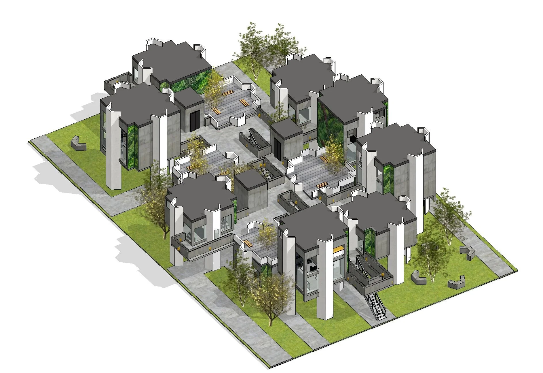 The Honey Comb Community started as the conceptual designs of a NEST, an ADU, and a MERGE of the two to create a community based on progressive ADU designs that interact with the environment and promote healthier and positive spaces.